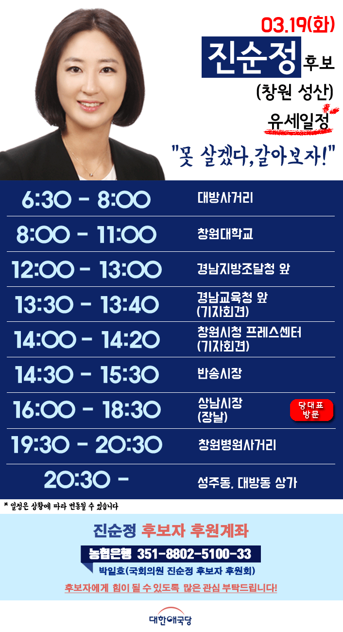19.03.19(È) ´ëÇѾֱ¹´ç Áø¼øÁ¤ Èĺ¸ÀÚ(â¿ø ¼º»ê) À¯¼¼ÀÏÁ¤
