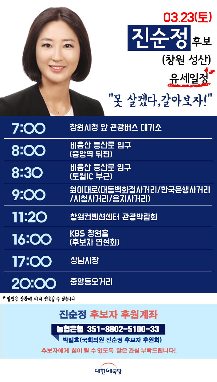 <19.03.23(Åä) ´ëÇѾֱ¹´ç Áø¼øÁ¤ Èĺ¸ÀÚ(â¿ø ¼º»ê) À¯¼¼ÀÏÁ¤>