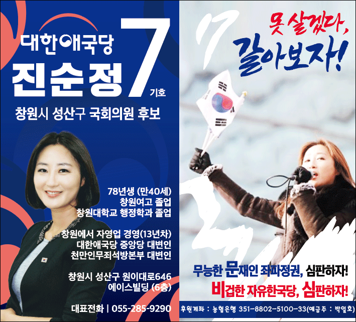 ´ëÇѾֱ¹´ç Áø¼øÁ¤ Èĺ¸ÀÚ(â¿ø ¼º»ê), ¹ÚûÁ¤ Èĺ¸ÀÚ(Å뿵 °í¼º) ¸íÇÔ