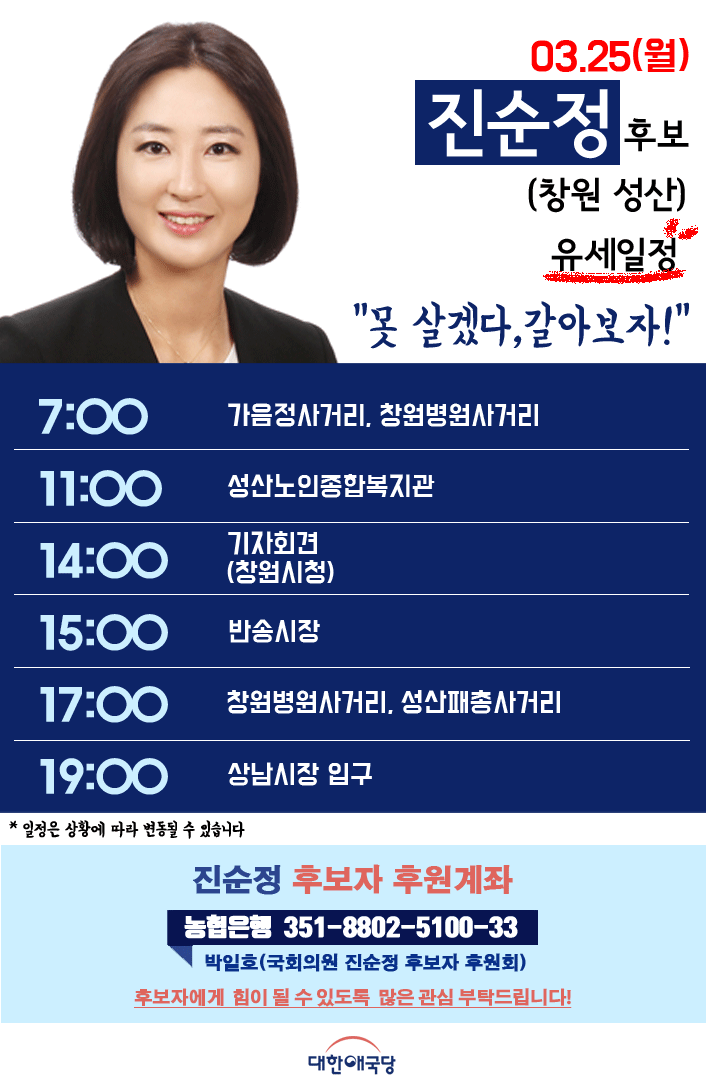 19.03.16(Åä) ´ëÇѾֱ¹´ç Áø¼øÁ¤ Èĺ¸ÀÚ(â¿ø ¼º»ê) À¯¼¼ÀÏÁ¤
