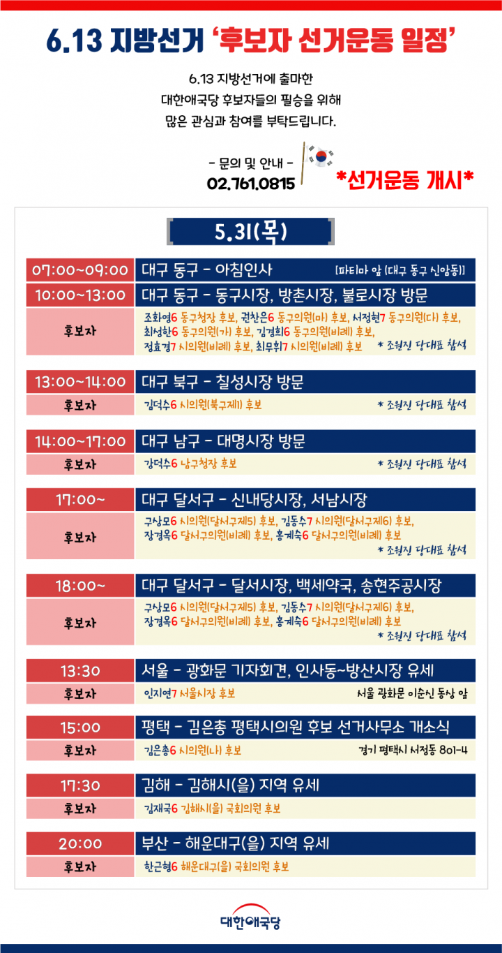 6/5(È) 6.13 Áö¹æ¼±°Å Èĺ¸ÀÚ ¼±°Å¿îµ¿ ÀÏÁ¤