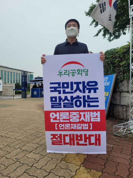 <º¸µµÀÚ·á> ¾ð·ÐÀç°¥¹ý, ¾ð·ÐÁßÀç¹ý °³Á¤¾ÈÀ» öÆóÇ϶ó! ¿ì¸®°øÈ´ç ±¹È¸ ¾Õ ¸±·¹ÀÌ 1ÀÎ ½ÃÀ§