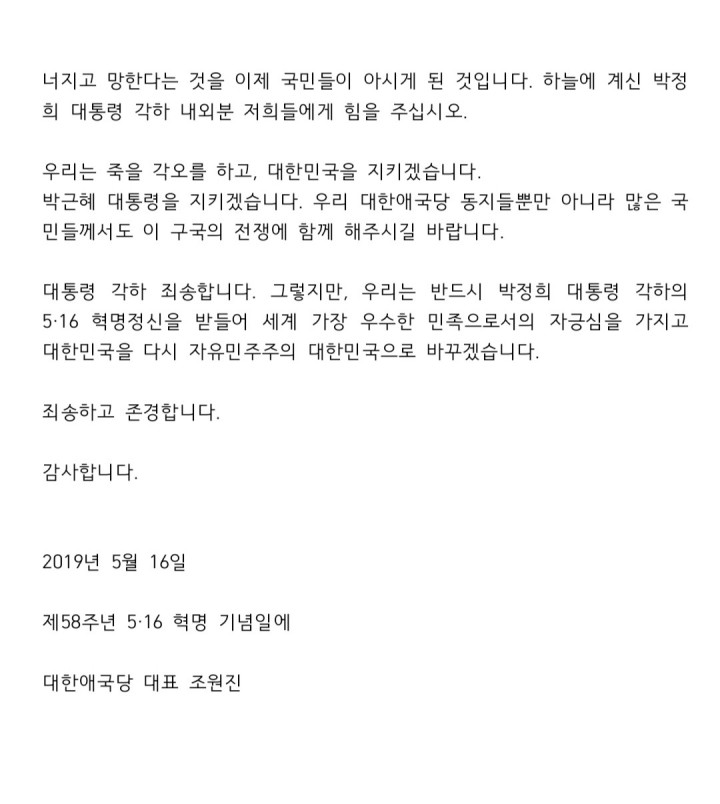 19.05.16(¸ñ) Á¦58ÁÖ³â 5.16Çõ¸í±â³äÀÏ Âü¹è, ´ëÇѾֱ¹´ç Á¶¿øÁø ´ëÇ¥ ±âÀÚȸ°ß ¹ß¾ð ³»¿ë ´ëÇѾֱ¹´ç 2019.05.16 hit:3583 ´Ý±â Photo image 1 Photo image 2 19.05.16(¸ñ) Á¦58ÁÖ³â 5.16Çõ¸í±â³äÀÏ Âü¹è, ´ëÇѾֱ¹´ç Á¶¿øÁø ´ëÇ¥ ±âÀÚȸ°ß ¹ß¾ð ³»¿ë File Download list view 20190516_222023.jpg 173.6 KB / 1737 20190516_222044.jpg 71.0 KB / 1765