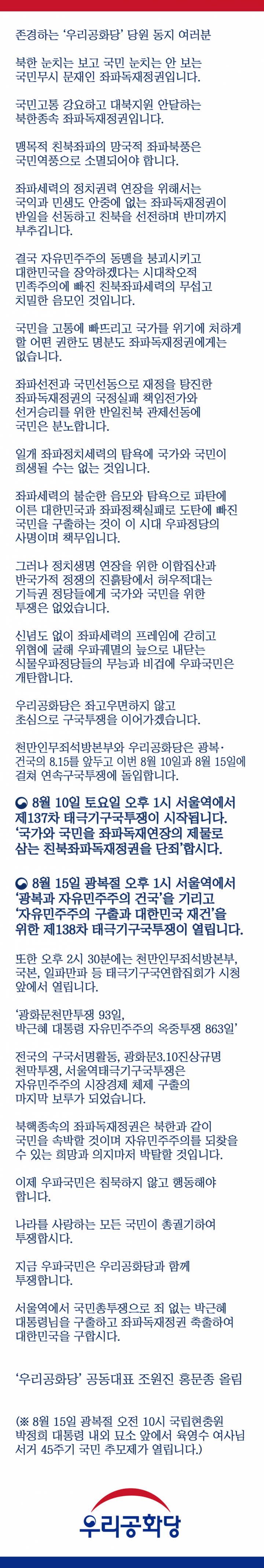 ³ª¶ó¸¦ »ç¶ûÇÏ´Â ¸ðµç ±¹¹ÎÀÌ ÃѱȱâÇÏ¿© ÅõÀïÇսôÙ._¿ì¸®°øÈ´ç °øµ¿´ëÇ¥ Á¶¿øÁø È«¹®Á¾ ¿ì¸®°øÈ´ç 2019.08.08 hit:3217 Photo image 1 ³ª¶ó¸¦ »ç¶ûÇÏ´Â ¸ðµç ±¹¹ÎÀÌ ÃѱȱâÇÏ¿© ÅõÀïÇսôÙ._¿ì¸®°øÈ´ç °øµ¿´ëÇ¥ Á¶¿øÁø È«¹®Á¾
