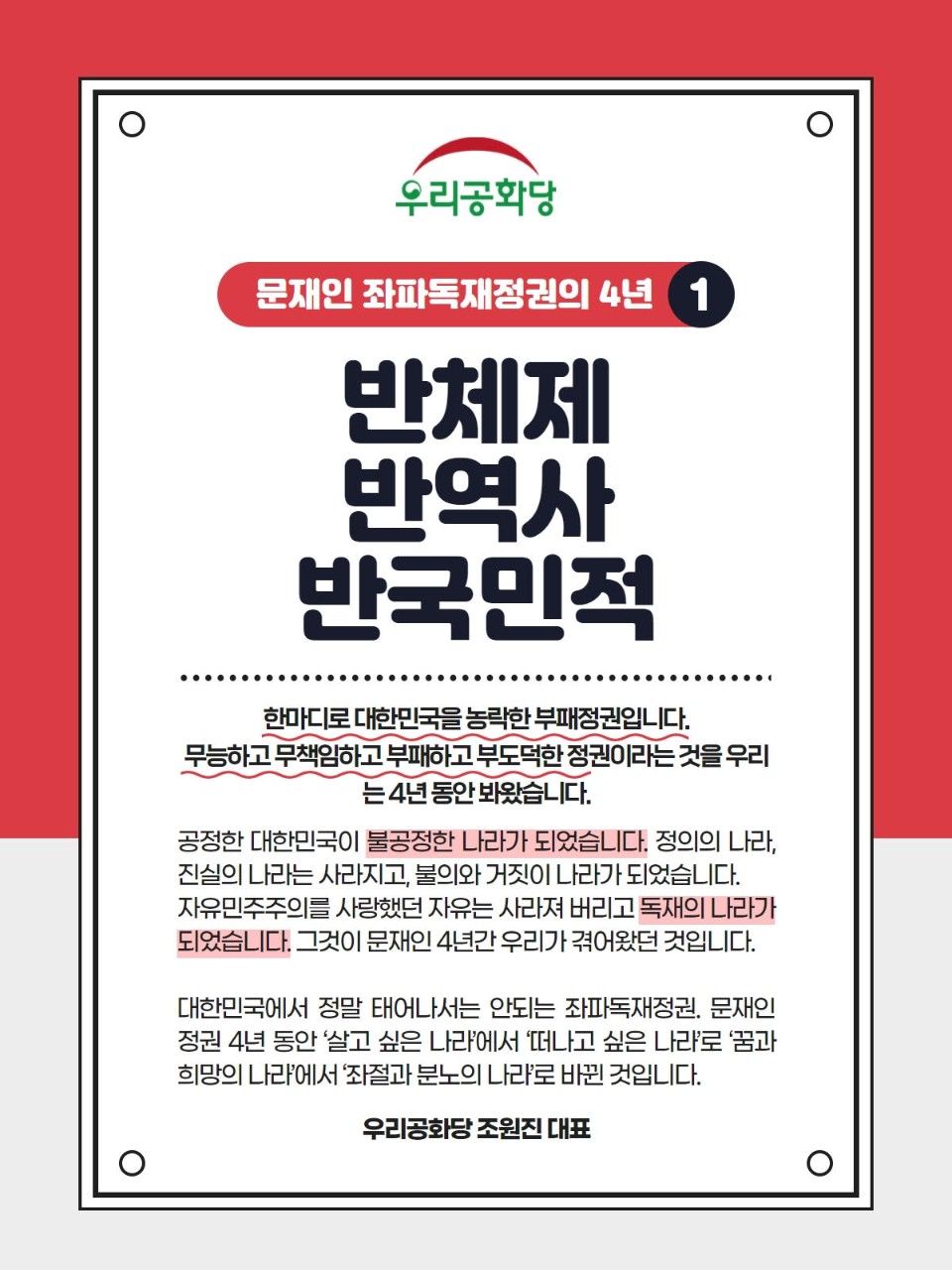 Á¦¸ñ : <¹®ÀçÀÎ ÁÂÆÄµ¶ÀçÁ¤±ÇÀÇ 4³â(1)> ¹®ÀçÀÎ ÁÂÆÄµ¶ÀçÁ¤±ÇÀº ¹ÝüÁ¦, ¹Ý¿ª»ç, ¹Ý±¹¹ÎÀû Á¤±Ç! ÇÁ·ÎÇÊ »çÁø ¿ì¸®°øÈ´çÄ«Æä½ºÅÇ 2021.05.13. 18:55Á¶È¸ 2