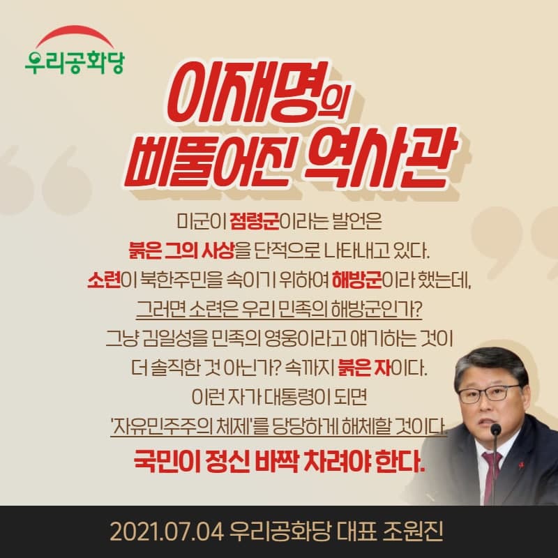 Á¦¸ñ : ÀÌÀç¸íÀÇ »ß¶Ô¾îÁø ¿ª»ç°ü-¹Ì±ºÀÌ Á¡·É±ºÀ̶ó´Â ±×ÀÇ ¹ß¾ðÀº ±×ÀÇ ºÓÀº »ç»óÀ» µå·¯³½´Ù!