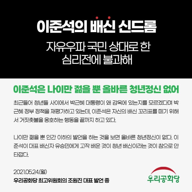 Á¦¸ñ : ÀÌÁؼ® Èĺ¸ ¹è½ÅÀÚ, û³âÁ¤½Å ¾ø¾î