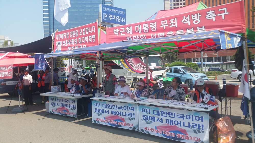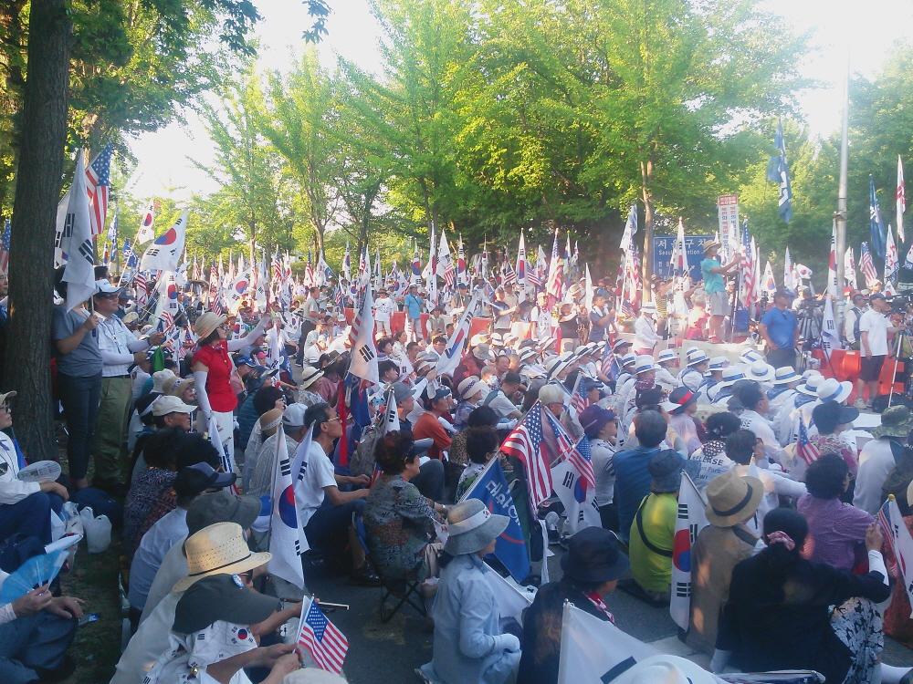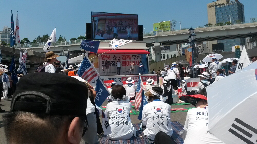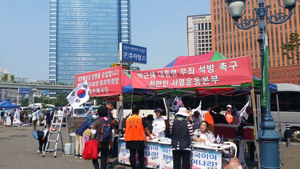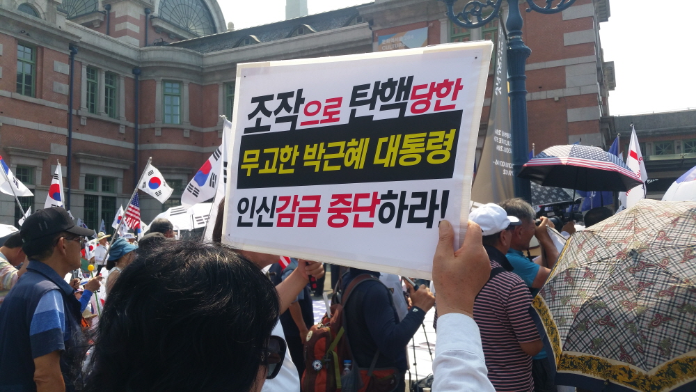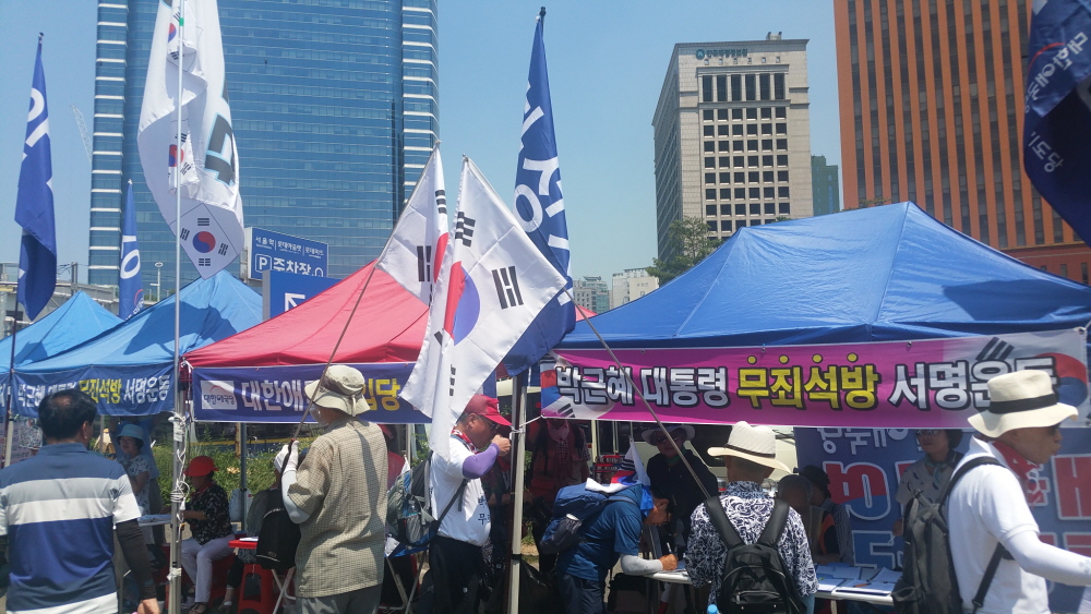ÇÑ¿©¸§ »ïº¹´õÀ§µµ ¹«»öÇÏ°Ô ¼¿ï¿ª °¡¸¶¼Ü°°Àº ¾Æ½ºÆÈÆ® ±¤Àå¿¡ 20¿©¸¸¸íÀÇ ¾Ö±¹Åõ»ç´ÔµéÀÌ ¸ð¿© ¹Ú±ÙÇý ´ëÅë·É´ÔÀ» ±¸ÃâÇϰí ÀÚÀ¯ ´ëÇѹα¹À» ¼öÈ£Çϱâ À§ÇÑ Å±رâÁýȸ¸¦ ¿¾ú´Ù. ¿ÀÈÄ 2½Ã°æºÎÅÍ º»Áýȸ°¡ ÀÖ¾ú°í ±×¿¡ ¾Õ¼ ¾Ö±¹°¡¼ö ±è¿µ¼±´Ô Á¤Áö¸¸´Ô ±×¸®°í ¹«±ÃÈ´ÔÀÇ °ø¿¬ÀÌ Àֱ⵵ Çß´Ù.