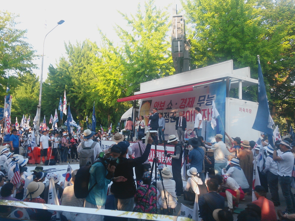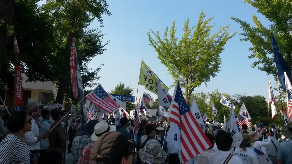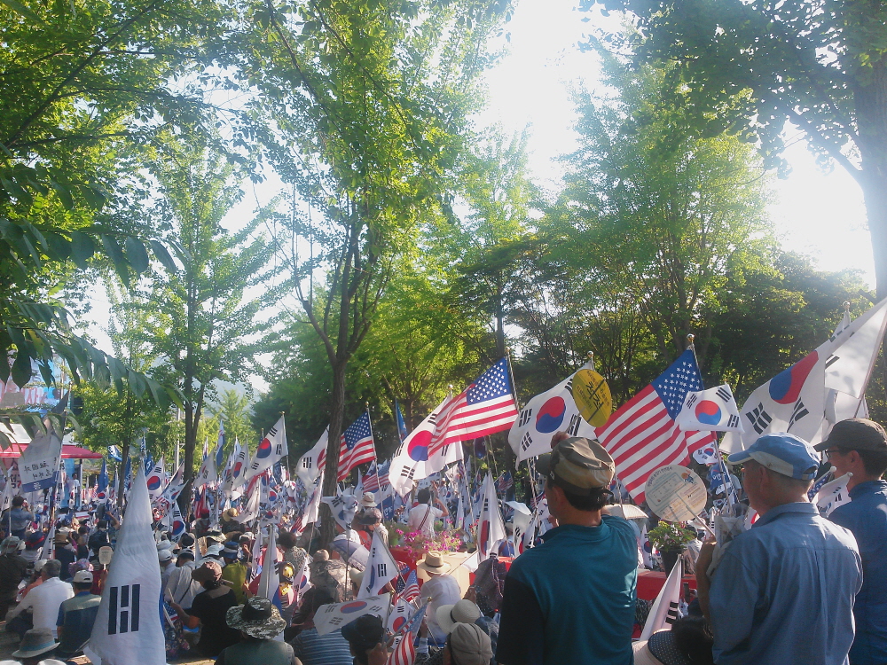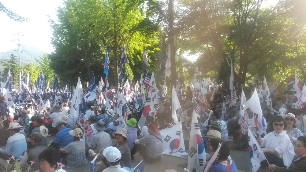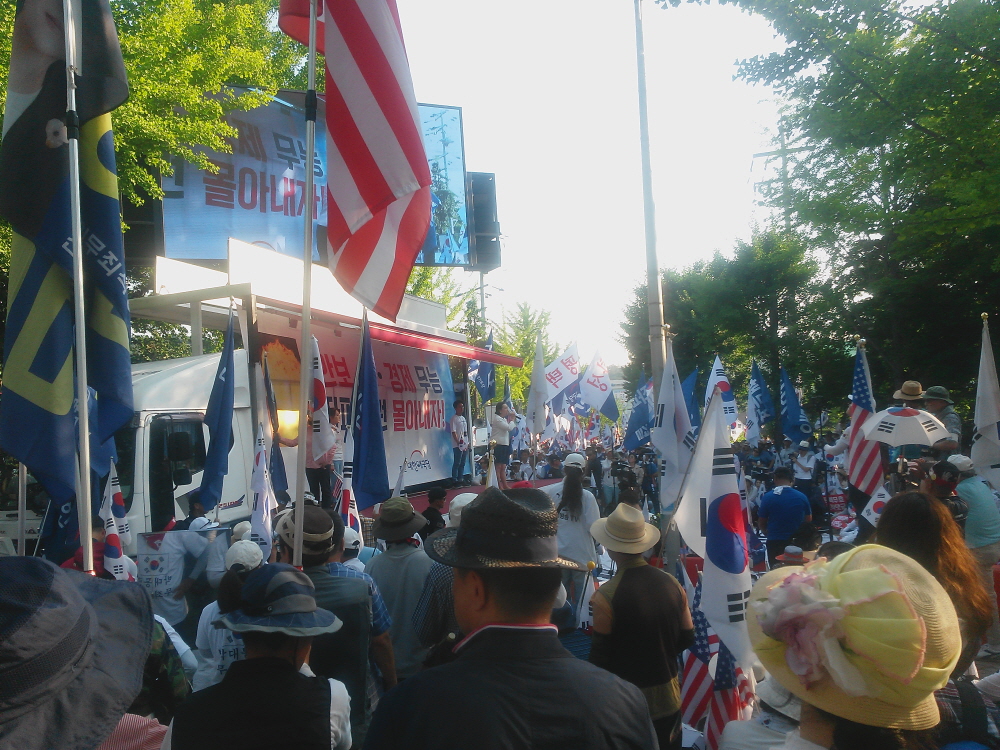 ÇÑ¿©¸§ »ïº¹´õÀ§µµ ¹«»öÇÏ°Ô ¼¿ï¿ª °¡¸¶¼Ü°°Àº ¾Æ½ºÆÈÆ® ±¤Àå¿¡ 20¿©¸¸¸íÀÇ ¾Ö±¹Åõ»ç´ÔµéÀÌ ¸ð¿© ¹Ú±ÙÇý ´ëÅë·É´ÔÀ» ±¸ÃâÇϰí ÀÚÀ¯ ´ëÇѹα¹À» ¼öÈ£Çϱâ À§ÇÑ Å±رâÁýȸ¸¦ ¿¾ú´Ù. ¿ÀÈÄ 2½Ã°æºÎÅÍ º»Áýȸ°¡ ÀÖ¾ú°í ±×¿¡ ¾Õ¼ ¾Ö±¹°¡¼ö ±è¿µ¼±´Ô Á¤Áö¸¸´Ô ±×¸®°í ¹«±ÃÈ´ÔÀÇ °ø¿¬ÀÌ Àֱ⵵ Çß´Ù.