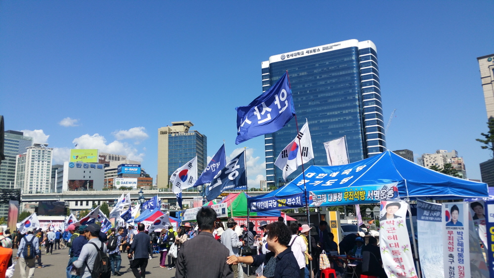 Ãß¼®¿¬ÈÞÀÓ¿¡µµ ºÒ±¸ÇÏ°í ¼ö¸¸ÀÇ ¾Ö±¹Åõ»ç´ÔµéÀÌ ¼­¿ï¿ª±¤Àå¿¡ ¸ð¿© ¹Ú±ÙÇý ´ëÅë·É´ÔÀ» ±¸ÃâÇϰí ÀÚÀ¯ ´ëÇѹα¹À» ¼öÈ£Çϱâ À§ÇÑ Å±رâÁýȸÈÄ ¹Ú±ÙÇý ´ëÅë·É´Ô °è½Ã´Â ¼­Ã»´ë(¼­¿ï±¸Ä¡¼Ò-ÀǿսÃ)·Î À̵¿ÇÏ¿© ¼­Ã»´ë ¾Õ¿¡¼­ 2ºÎ űرâÁýȸ¸¦ ¿­¾ú½À´Ï´Ù. ±×ÈÄ ¼­Ã»´ë¿¡¼­ Àδö¿ø±îÁö(2km ³»¿Ü) ±¸±¹ÀÇ Å±رâÇàÁøÀ» ÇÏ°í ÆòÈ­·Ó°Ô ÇØ»êÇß½À´Ï´Ù.