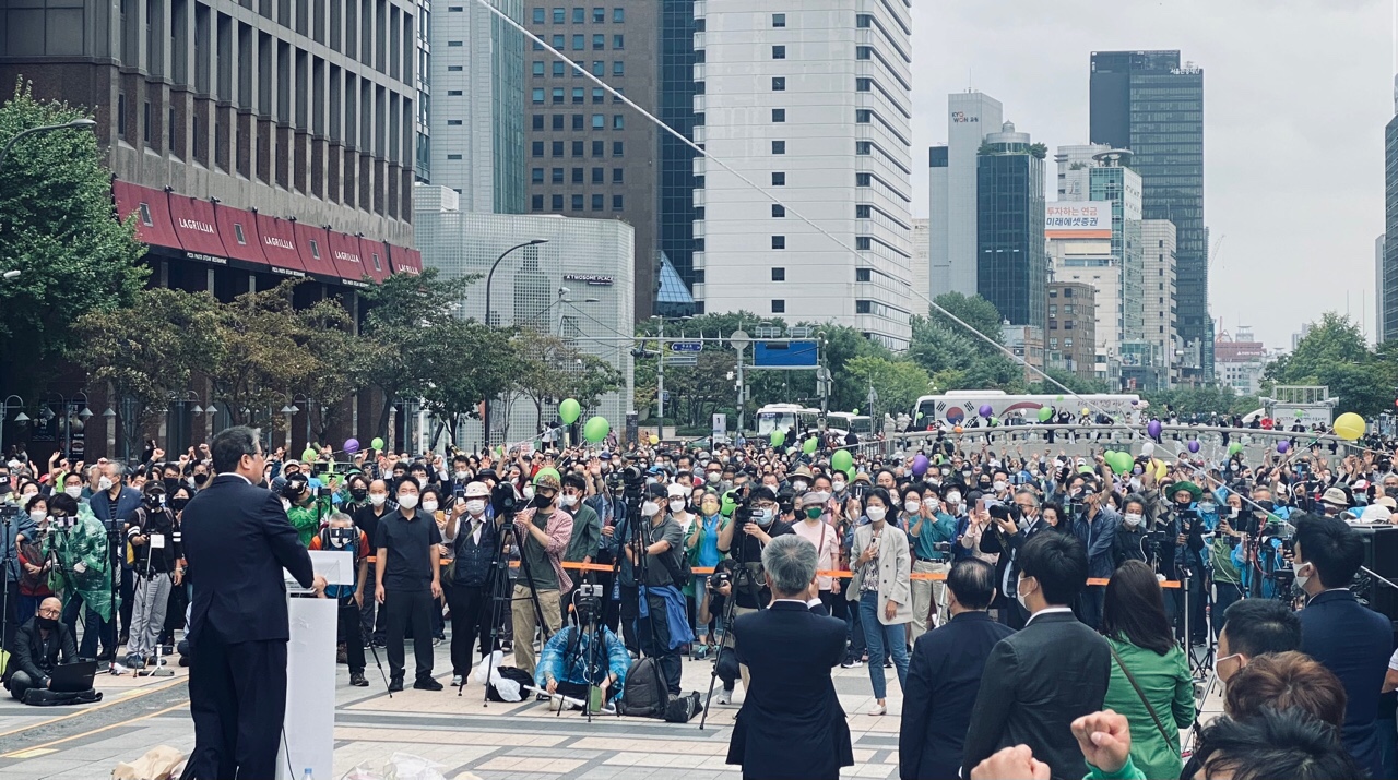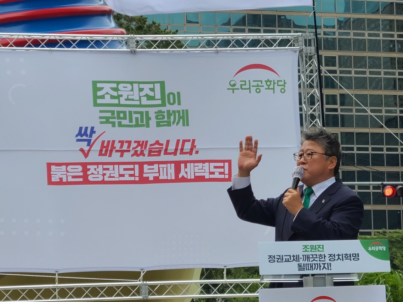 ¿ì¸®°øÈ´ç Á¶¿øÁø ´ëÇ¥´Â 4ÀÏ(¿ù) 13½Ã, û°è±¤Àå ¼Ò¶óž ¾Õ¿¡¼ "´õ ÀÌ»ó ±¹¹ÎµéÀ» °ÅÁþÃкÒÀÇ ³ë¿¹·Î »ì°Ô ÇØ¼´Â ¾ÈµÈ´Ù. ¹®ÀçÀÎ ÁÂÆÄµ¶ÀçÁ¤±Ç¿¡ ´ç´çÈ÷ ¸Â¼ »©¾Ñ±ä ÀÚÀ¯¿Í »©¾Ñ±ä Àαǰú »©¾Ñ±ä ±¹¹ÎÀÇ ±Ç¸®¸¦ ´Ù½Ã µÇã¾Æ ¿À°Ú´Ù"¸é¼ "ºÎÁ¤ºÎÆÐ ¼¼·ÂÀ» ¸ô¾Æ³»´Â ±ú²ýÇÑ Á¤Ä¡, È®½ÇÇÑ Á¤±Ç±³Ã¼, È®½ÇÇÑ Á¤Ä¡±³Ã¼¸¦ À§ÇØ 20´ë ´ëÅë·É ¼±°Å¿¡ Ã⸶ÇÑ´Ù"°í ¹àÇû´Ù.