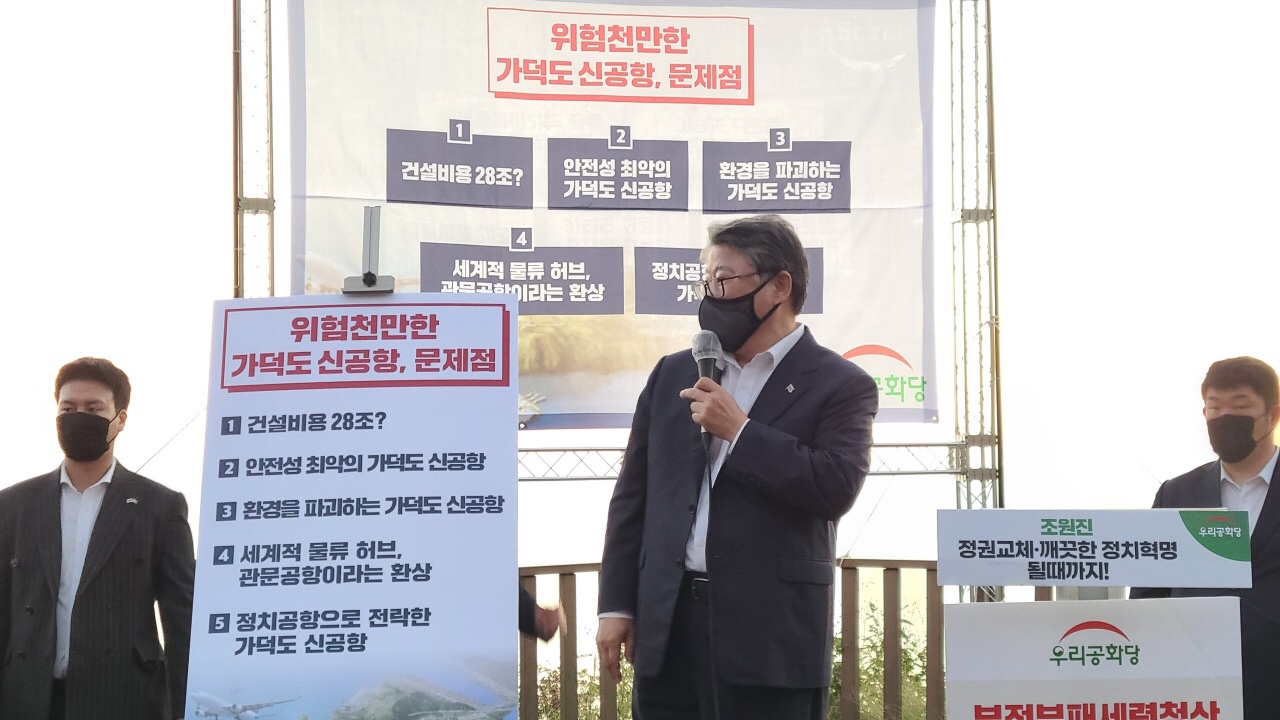 Á¶¿øÁø ´ëÇ¥´Â "°¡´öµµ ½Å°øÇ×Àº 28Á¶°¡ ³Ñ´Â õ¹®ÇÐÀû ¿¹»êÀÌ ÅõÀԵǴµ¥ ¾ÈÀü¼ºÀÌ ¸Å¿ì Ãë¾àÇÏ°í ½Å°øÇ× °Ç¼³ÀÇ È¿°úµµ ¸Å¿ì Àǹ®½Ã µÈ´Ù"¸é¼ "°ÅÁþÃÐºÒ ¹®ÀçÀÎ Á¤±Ç°ú ºÒÀÇÀÇ Á¤Ä¡ÀεéÀÌ ¼ÕÀâ°í ±¹¹ÎÀ» ÇÇÇØÀÚ·Î ¸¸µå´Â ±¹¹Î »ç±â±ØÀ» ¸·¾Æ¾ß ÇÑ´Ù"°í ÁÖÀåÇß´Ù.