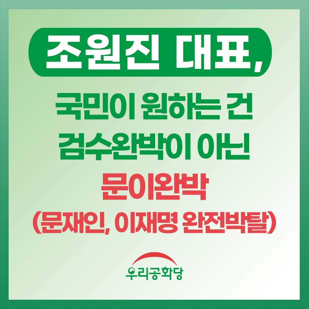 ¿ì¸®°øÈ­´ç Á¶¿øÁø ´ëÇ¥´Â 19ÀÏ(È­) º¸µµÀڷḦ ÅëÇØ "¹®ÀçÀÎ Á¤±ÇÀÌ ±â¹«»ç¿Í ±¹Á¤¿øÀ» Á¤Ä¡Àû ¸ñÀûÀ¸·Î ÇØÃ¼½ÃŰ´õ´Ï ÀÌÁ¦´Â °ËÂûÀ» ÇØÃ¼½ÃŰ·Á°í Çϰí ÀÖ´Ù"¸é¼­ "5³â ³»³» ´ëÇѹα¹À» ÇØÃ¼½Ã۰í Çå¹ý À§¹ÝÇàÀ§¸¦ ÀÏ»ï´Â ¹®ÀçÀÎ Á¤±ÇÀÌ ÀڽŵéÀÇ Á¤±Ç ¼ö»ç¸¦ ¹«·ÂÈ­½ÃŰ·Á´Â ½Ãµµ¸¦ °Ë¼ö¿Ï¹ÚÀ¸·Î Æ÷ÀåÇϰí ÀÖ´Â °Í"À̶ó°í ¸»Çß´Ù.