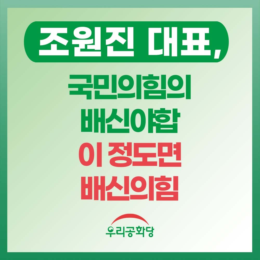 ¿ì¸®°øÈ´ç Á¶¿øÁø ´ëÇ¥´Â 25ÀÏ(¿ù) º¸µµÀڷḦ ³»°í "±¹¹ÎÀÇÈûÀÌ ¹Úº´¼® ±¹È¸ÀÇÀåÀÇ ¡®°Ë¼ö¿Ï¹Ú¡¯ÁßÀç¾ÈÀ» ¼ö¿ëÇÑ °ÍÀº Èû¾ø´Â ±¹¹Î°ú ¼¹ÎµéÀ» °øÆ÷·Î ¸ô¾Æ³Ö´Â ÇàÀ§·Î, »ç½Ç»ó ´õºÒ¾î¹ÎÁÖ´ç°ú Çå¹ýÆÄ±« °ø¹üÀÓÀ» ÀÚÇàÇÑ °Í"À̶ó¸é¼ "´ëÇѹα¹ÀÇ Çå¹ý°ú ±¹¹ÎÀÇ ±âº»±ÇÀ» ¹«½ÃÇÑ ±Ç¼ºµ¿ ±¹¹ÎÀÇÈû ¿ø³»´ëÇ¥´Â ¸ðµç Á÷¿¡¼ ¹°·¯³ª´Â °ÍÀÌ ±¹¹Î¿¡ ´ëÇÑ µµ¸®"¶ó°í ¸»Çß´Ù.