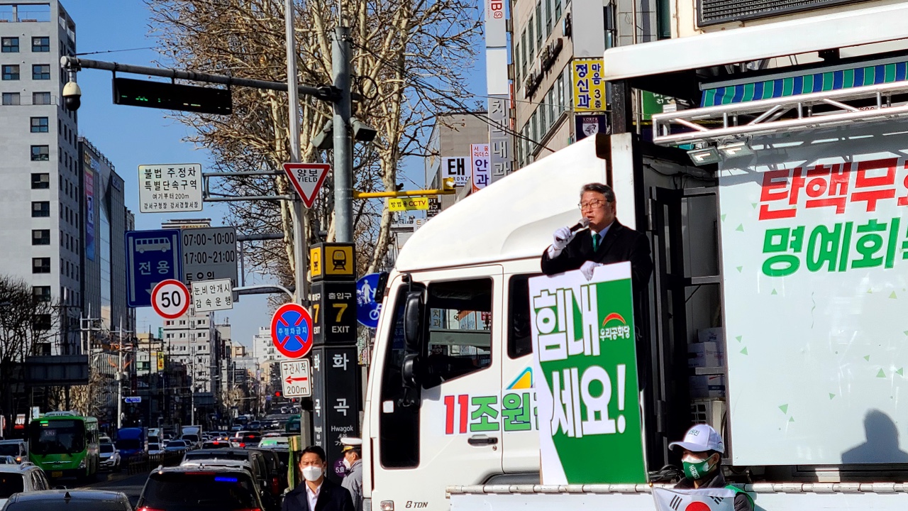 ¿ì¸®°øÈ´ç Á¶¿øÁø ´ëÅë·É È帴 5ÀÏ(Åä) ¿ÀÀü 10½Ã ¼¿ï Ȱ ¾Õ °Å¸®À¯¼¼¿¡¼ "Á˾ø´Â ¹Ú±ÙÇý ´ëÅë·ÉÀ» °ÅÁþÀ½ÇØ·Î ¸¶³à»ç³ÉÇß´ø °ÅÁþÃкÒÀÌ Åº»ý½ÃŲ °¡Â¥ ¿µ¿õÀÌ Áö±ÝÀÇ À±¼®¿ Èĺ¸"¶ó¸é¼ "°ÅÁþ°ú À½¸ð, Á¶ÀÛ°ú ±âȹÀ¸·Î ź»ýÇÑ À±¼®¿ Èĺ¸¿¡°Ô °øÁ¤°ú Á¤ÀǸ¦ ¿ä±¸ÇÏ´Â ÀÚü°¡ ºÒ°¡´ÉÇÏ´Ù"°í ÁöÀûÇß´Ù.