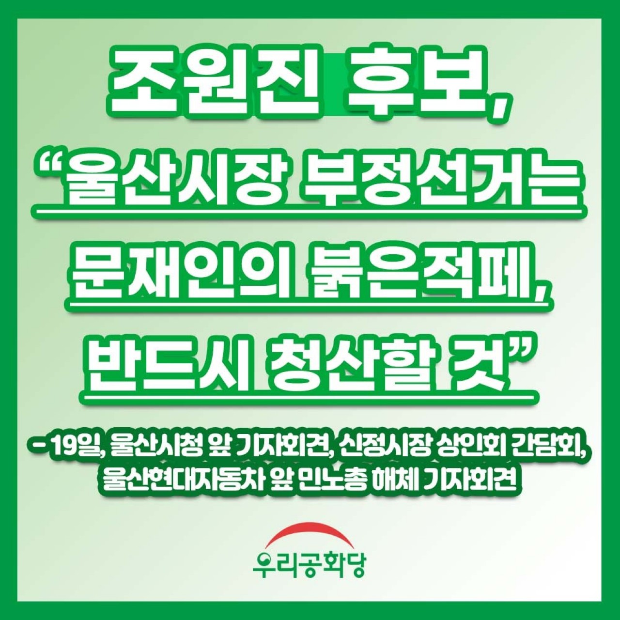Á¶¿øÁø Èĺ¸, "¿ï»ê½ÃÀå ºÎÁ¤¼±°Å´Â ¹®ÀçÀÎÀÇ ºÓÀºÀûÆä, ¹Ýµå½Ã û»êÇÒ °Í"