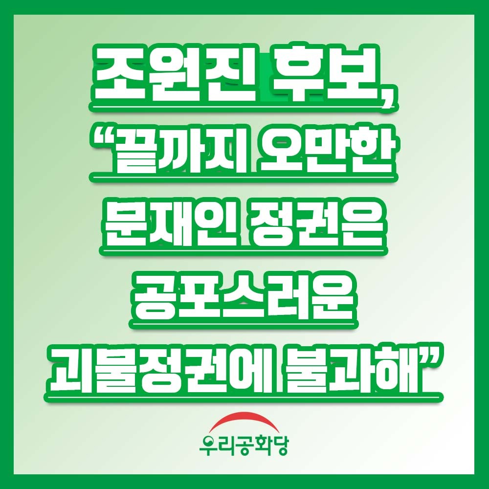 Á¶¿øÁø Èĺ¸, "³¡±îÁö ¿À¸¸ÇÑ ¹®ÀçÀÎ Á¤±ÇÀº °øÆ÷½º·¯¿î ±«¹°Á¤±Ç¿¡ ºÒ°úÇØ"