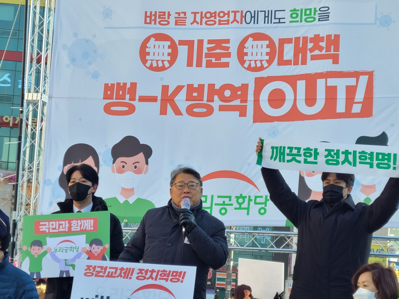 ¿ì¸®°øÈ´ç Á¶¿øÁø ´ëÅë·É È帴 4ÀÏ(È) ¼º³²¸ð¶õ½ÃÀå Èñ¸Á¹è´Þ À庸±â Çà»ç¿¡ Âü¼®ÇÑ ÈÄ °¡Áø ¿¬¼³¿¡¼ "¾îÁ¦ ¹®ÀçÀÎÀÇ ½Å³â ±âÀÚȸ°ßÀº Èûµé°Ô »ì°í ÀÖ´Â ÀÚ¿µ¾÷ÀÚ¿Í ¼¹Îµé¿¡°Ô´Â °øÆ÷½º·¯¿î ÀÚȸÀÚÂùÀ̾ú´Ù"¸é¼ "³¡±îÁö ¿À¸¸ÇÏ°í ±¹¹ÎÀÇ ¾ÆÇÄÀ» ¸ð¸£´Â ¹®ÀçÀÎ Á¤±ÇÀº °øÆ÷½º·¯¿î ±«¹°Á¤±Ç¿¡ ºÒ°úÇÏ´Ù"°í ¸»Çß´Ù.