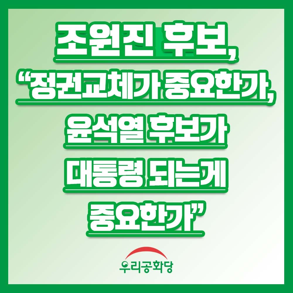 Á¶¿øÁø Èĺ¸, "Á¤±Ç±³Ã¼°¡ Áß¿äÇѰ¡, À±¼®¿ È帰¡ ´ëÅë·É µÇ´Â°Ô Áß¿äÇѰ¡"