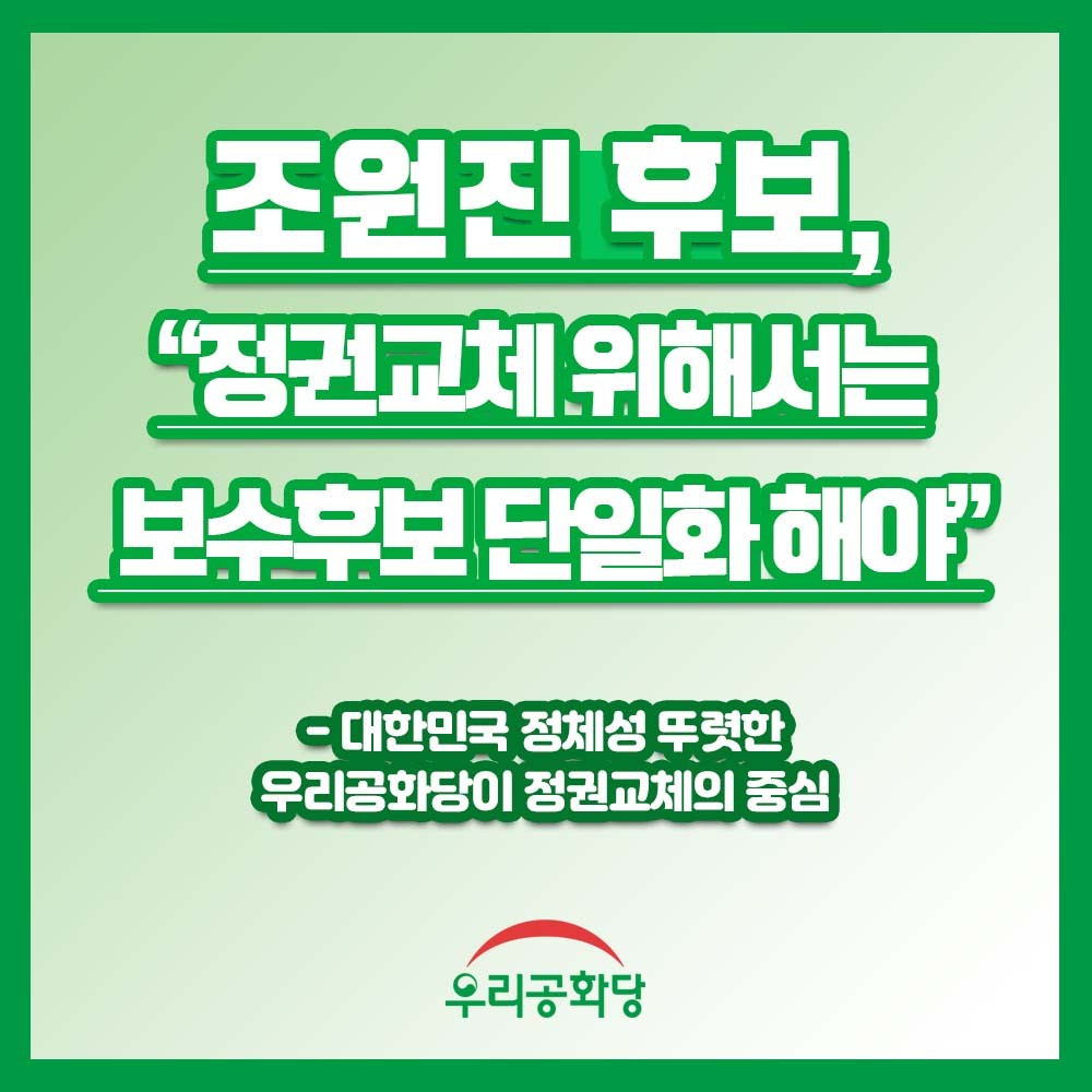 Á¶¿øÁø Èĺ¸, "Á¤±Ç±³Ã¼ À§Çؼ´Â º¸¼öÈĺ¸ ´ÜÀÏÈ ÇØ¾ß"