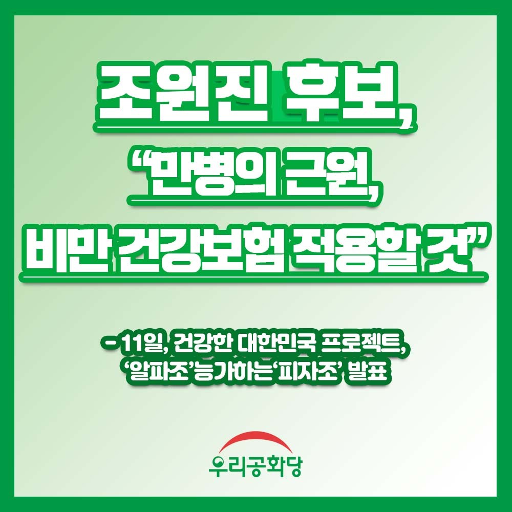 Á¶¿øÁø Èĺ¸, "¸¸º´ÀÇ ±Ù¿ø, ºñ¸¸ °Ç°º¸Çè Àû¿ëÇÒ °Í"