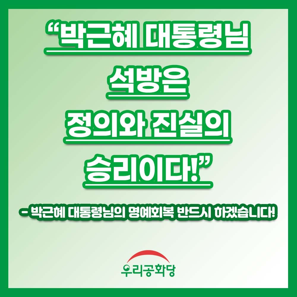 ¿ì¸®°øÈ´ç ´ç¿ø°ú ÀÚÀ¯¿ìÆÄ ±¹¹ÎÀº ±ú²ýÇÑ ´ëÅë·É, ´ëÇѹα¹ÀÇ ±¹¹Î´ëÅë·É ¹Ú±ÙÇý ´ëÅë·É°ú ÇÔ²² ÀÚÀ¯Çõ¸íÀ» ¹Ýµå½Ã ¿Ï¼öÇÏ¿© ¹®ÀçÀÎ ÁÂÆÄµ¶ÀçÁ¤±ÇÀÌ »©¾ÑÀº ±¹¹ÎÀÇ ÀÚÀ¯¿Í ±Ç¸®¸¦ ¹Ýµå½Ã µÇãÀ» °ÍÀÌ´Ù.