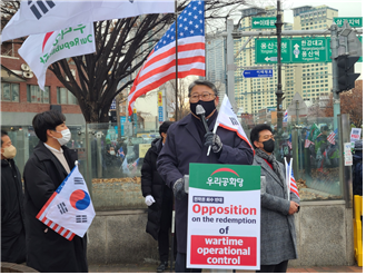 ¿ì¸®°øÈ´ç Á¶¿øÁø ´ëÅë·É È帴 2ÀÏ(¸ñ) 11½Ã, ±¹¹æºÎ ¹Î¿ø½Ç ¾Õ ±âÀÚȸ°ß¿¡¼ "À߸øµÈ Á¾Àü¼±¾ð°ú ÀüÀÛ±Ç ÀüȯÀº Çѹ̵¿¸ÍÀ» ¹«·ÂÈÇϰí ÁÖÇѹ̱º ö¼ö µî Çѹݵµ ¾Èº¸¸¦ ºÒ¾ÈÇÏ°Ô ¸¸µå´Â Ä£ºÏ ÁÖ»çÆÄ¼¼·ÂµéÀÇ ÁÖÀå¿¡ ºÒ°úÇÏ´Ù"¸é¼ "ºÏÇÑÀÇ Çٹ̻çÀÏ À§Çù, Áß±¹ÀÇ À§Çù µî µ¿ºÏ¾ÆÀÇ ¾Èº¸È¯°æÀ» °í·ÁÇÒ ¶§ Á¾Àü¼±¾ð°ú ÀüÀÛ±Ç ÀüȯÀº Àý´ë ¾ÈµÈ´Ù"°í °Á¶Çß´Ù.