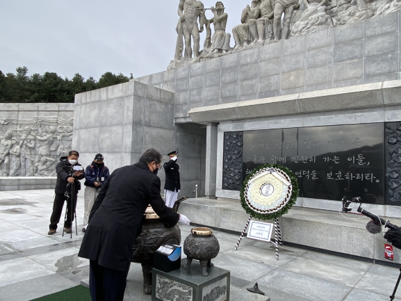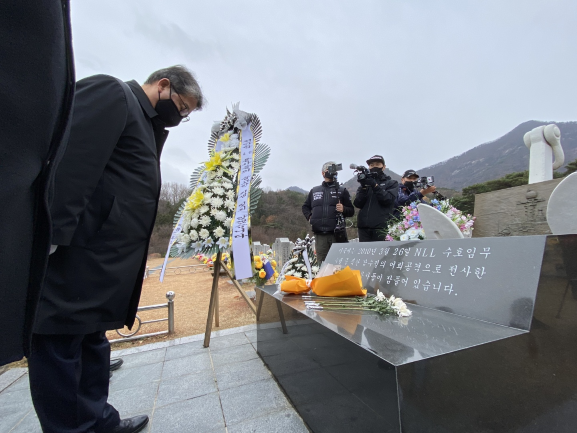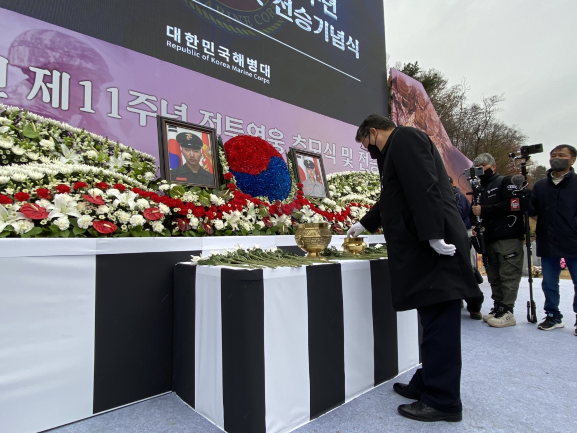 ¿ì¸®°øÈ´ç Á¶¿øÁø ´ë¼± È帴 23ÀÏ ¿¬Æòµµ Æ÷°ÝÀü 11Áֱ⸦ ¸Â¾Æ ´ëÀü ÇöÃæ¿øÀ» ¹æ¹®Çؼ ¿¬Æòµµ Æ÷°ÝÀü Àü»çÀÚ ¼Á¤¿í ÇÏ»ç¿Í ¹®±¤¿í ÀϺ´À» Ã߸ðÇß´Ù.