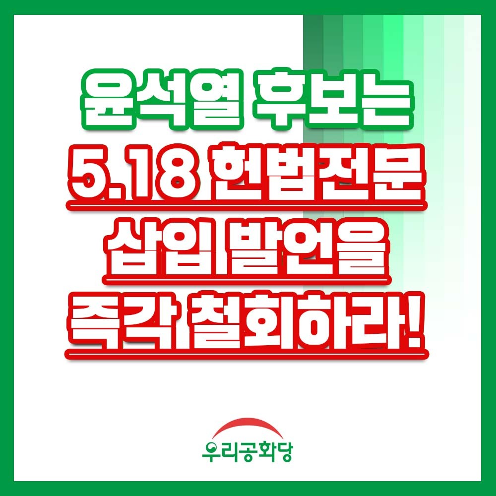 5.18 Á¤½ÅÀ» Çå¹ýÀü¹®¿¡ »ðÀÔÇϰڴٴ À±¼®¿ Èĺ¸ÀÇ ¸Á¾ðÀ» ±ÔźÇÑ´Ù !