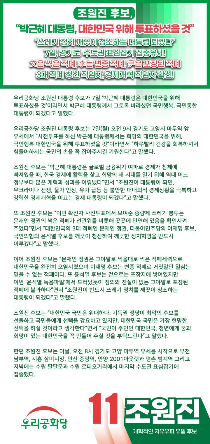 Á¶¿øÁø Èĺ¸, "¹Ú±ÙÇý ´ëÅë·É, ´ëÇѹα¹ À§ÇØ ÅõÇ¥ÇϼÌÀ» °Í"(2022-03-07)
