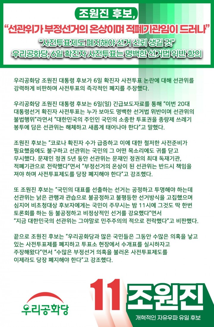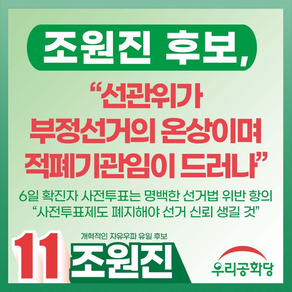 Á¶¿øÁø Èĺ¸, "¼±°üÀ§°¡ ºÎÁ¤¼±°ÅÀÇ ¿Â»óÀ̸ç ÀûÆó±â°üÀÓÀÌ µå·¯³ª"(2022-03-06)