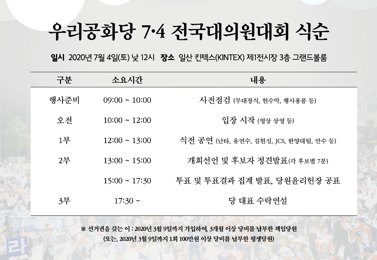 20.07.04(Åä) ¿ì¸®°øÈ­´ç Àü±¹´ëÀÇ¿ø´ëȸ ´çÀÏ ÀÏÁ¤ ¾È³»