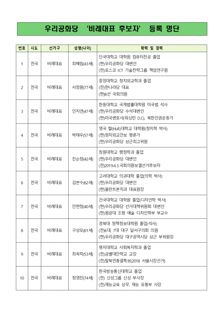 Á¦¸ñ : 4.15 ÃѼ± ¿ì¸®°øÈ´ç 'ºñ·Ê´ëÇ¥Èĺ¸ÀÚ' µî·Ï¸í´Ü