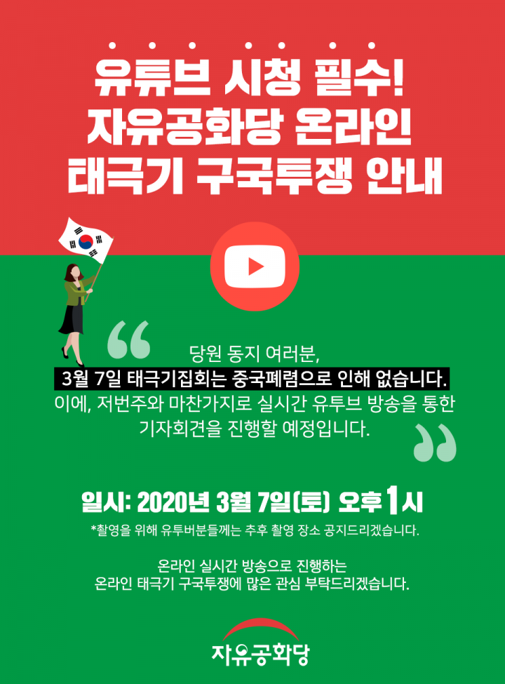 [Áýȸ´ë½Å] 20.03.01(ÀÏ) 3¡¤1Àý Á¦172Â÷ E-űرâÁýȸ ¾È³» : ¿ÀÈÄ 1½Ã, ¿ì¸®°øÈ´çLIVE ¹× ¿ì¸®°øÈ´ç°ú ÇÔ²²ÇÏ´Â À¯Æ©ºê ä³ÎÀ» ½ÃÃ»ÇØ ÁÖ¼¼¿ä!