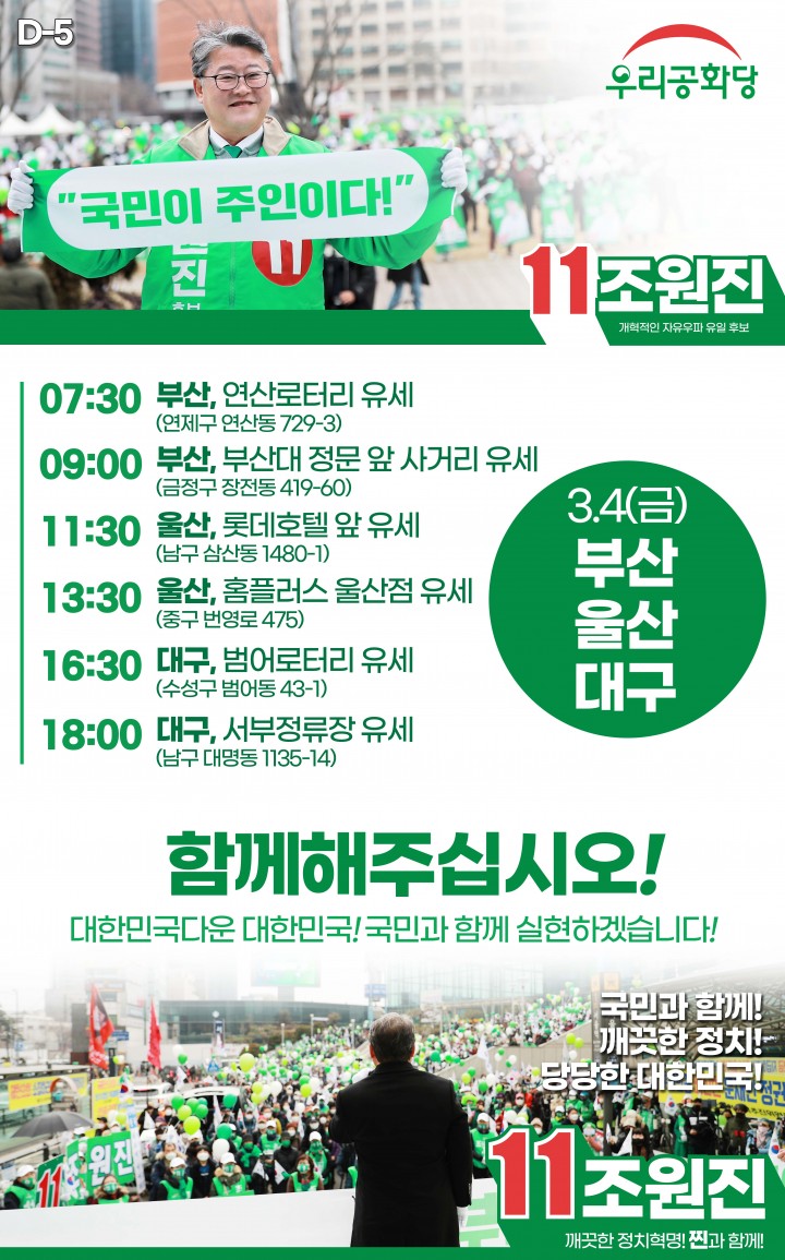 Á¶¿øÁø Èĺ¸, ±ú²ýÇÑ Á¤Ä¡Çõ¸í, ÁøÁ¤ÇÑ Á¤±Ç±³Ã¼Çؾß, ¾Èö¼öÀÇ Ã¶¼ö´Â ¿¹»óÇÑ Ã¶¼ö(2022-03-03)