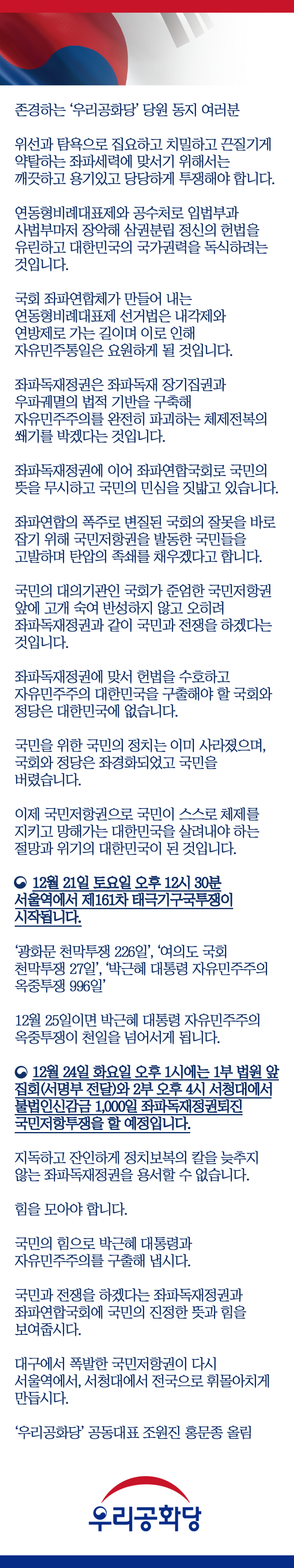 ÁÂÆÄµ¶ÀçÁ¤±Ç¿¡ À̾î ÁÂÆÄµ¶½Ä±¹È¸µµ ¸·¾Æ³»¾ß ÇÕ´Ï´Ù_¿ì¸®°øÈ´ç °øµ¿´ëÇ¥ Á¶¿øÁø È«¹®Á¾