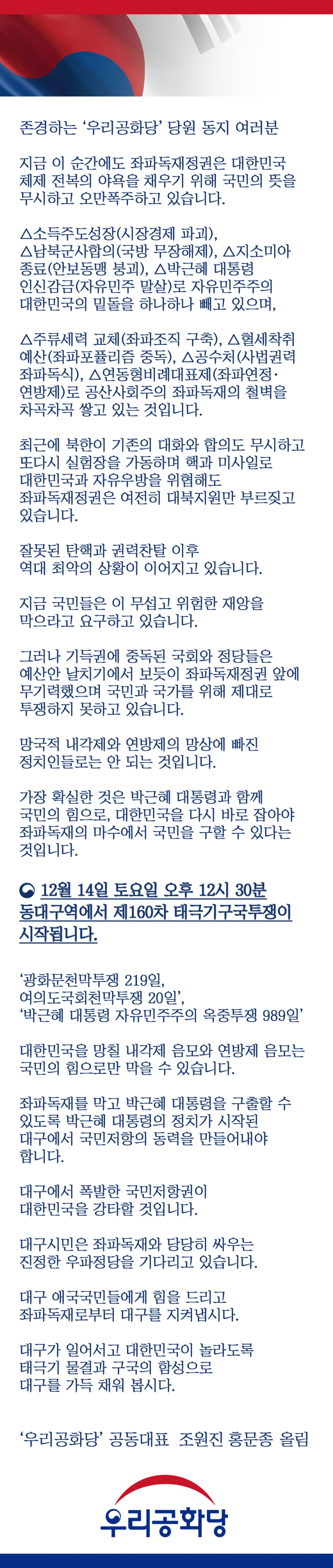 űر⹰°á°ú ±¸±¹ÀÇ ÇÔ¼ºÀ¸·Î ´ë±¸¸¦ °¡µæ ä¿ó½Ã´Ù_¿ì¸®°øÈ´ç °øµ¿´ëÇ¥ Á¶¿øÁø È«¹®Á¾