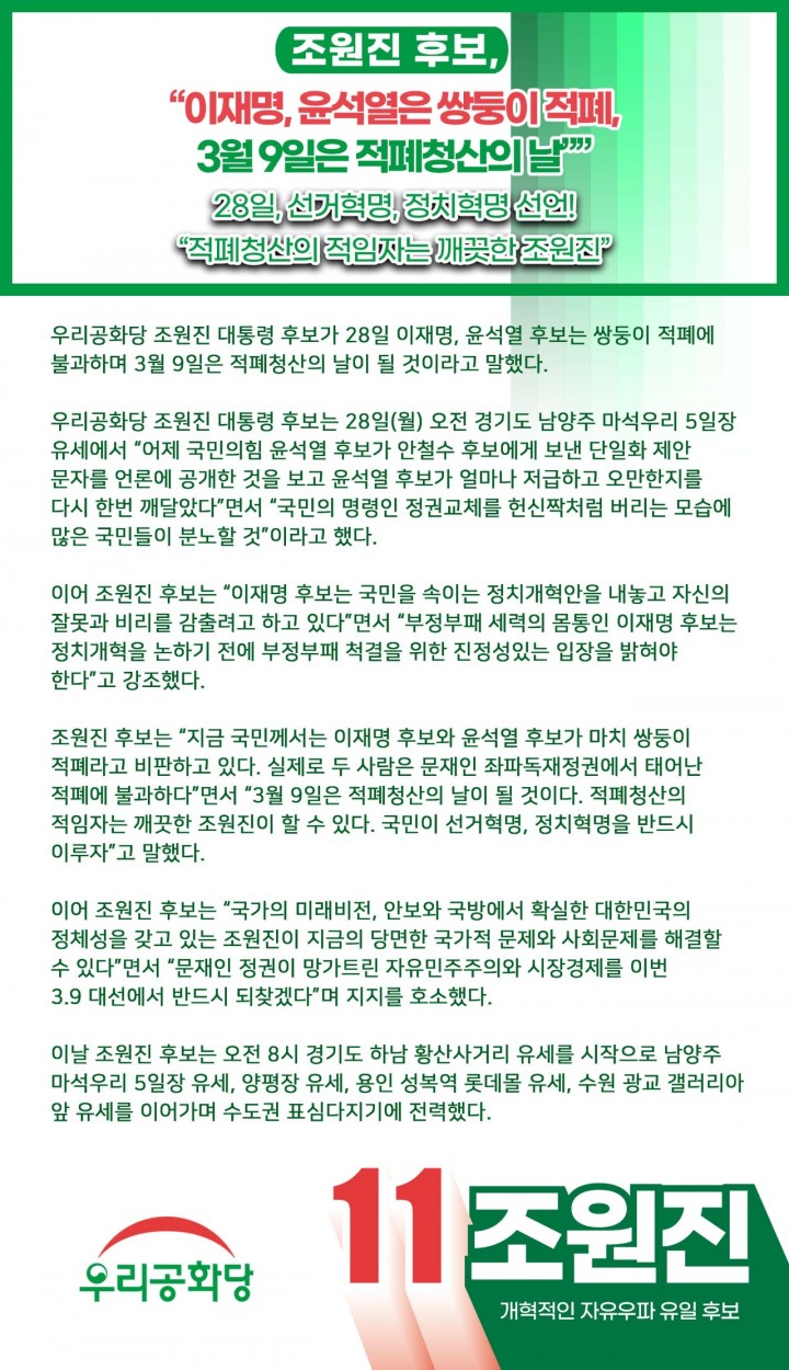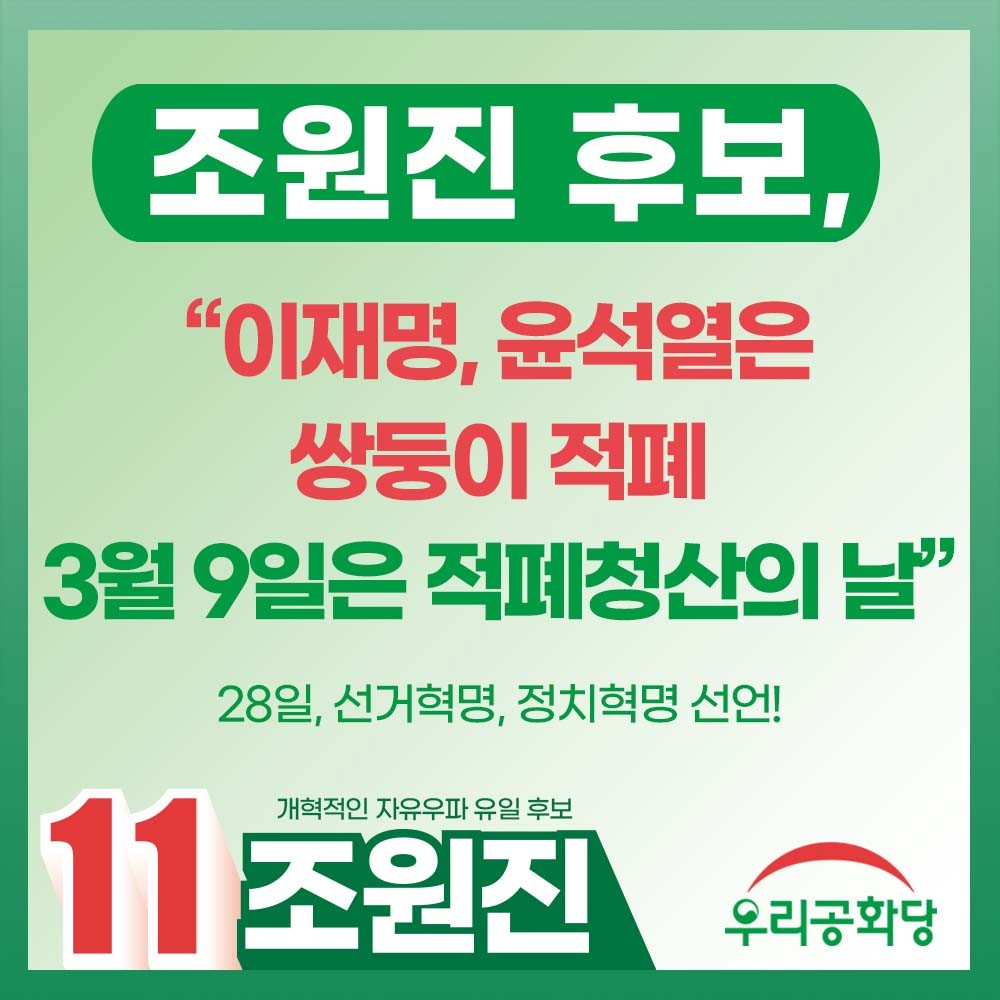 Á¶¿øÁø Èĺ¸, "ÀÌÀç¸í, À±¼®¿Àº ½ÖµÕÀÌ ÀûÆó, 3¿ù 9ÀÏÀº ÀûÆóû»êÀÇ ³¯"(2022-02-28)