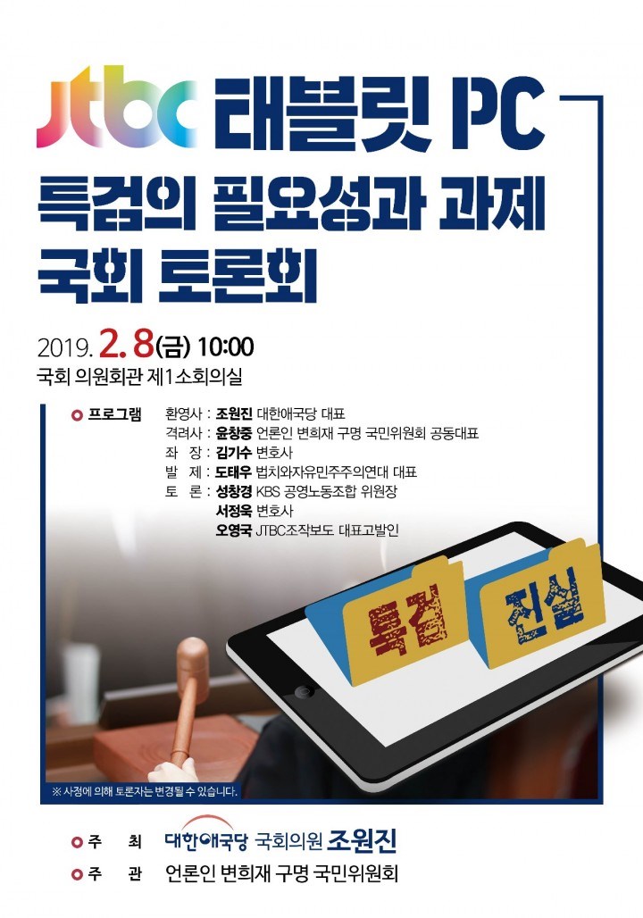 ¡á JTBCÅÂºí¸´PC Ư°ËÀÇ Çʿ伺°ú °úÁ¦ ±¹È¸Åä·Ðȸ ¾È³» ¡á