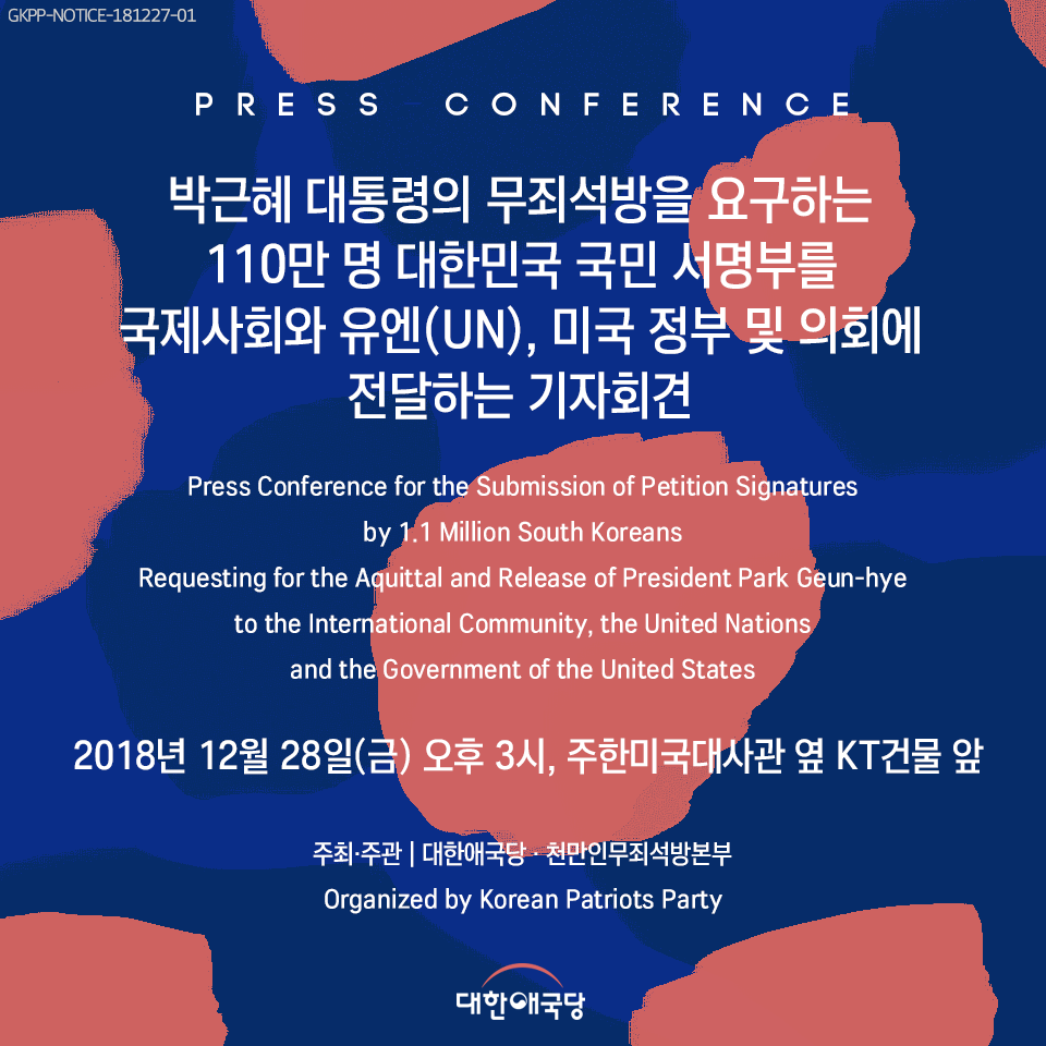 Press Conference for the Submission of Petition Signatures by 1.1 Million South Koreans Requesting for the Aquittal and Release of President Park Geun-hye to the International Community, the United Nations and the Government of the United States