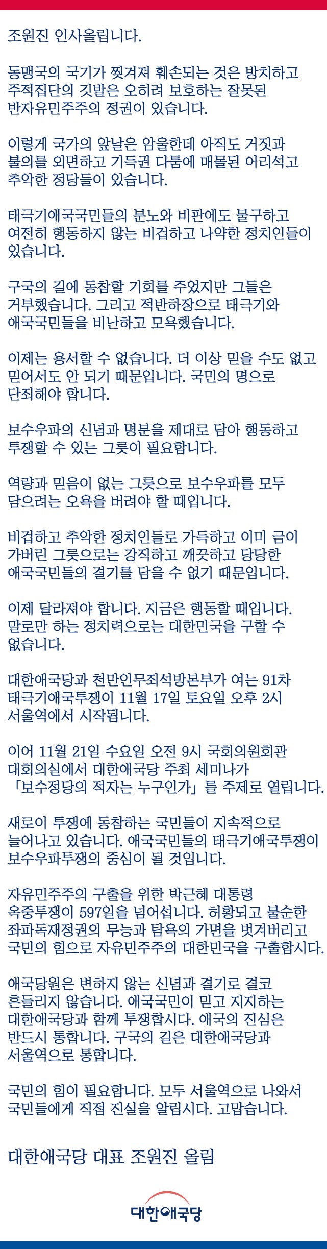 ¢Ã ¡¸´ëÇѹα¹ º¸¼öÀÇ ÀûÀÚ´Â ´©±¸Àΰ¡¡¹ ¼¼¹Ì³ª °³ÃÖ ¾È³» ¢Ã