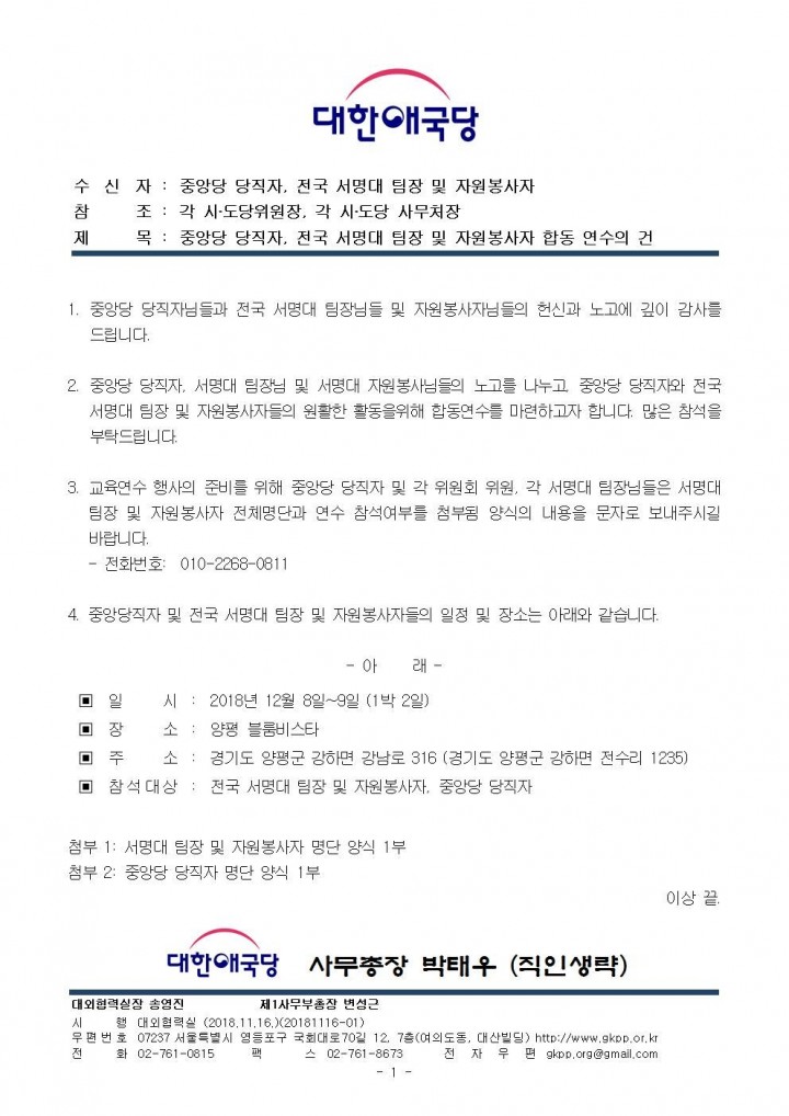 Á¦¸ñ : Áß¾Ó´ç ´çÁ÷ÀÚ, Àü±¹ ¼¸í´ë ÆÀÀå ¹× ÀÚ¿øºÀ»çÀÚ ÇÕµ¿ ¿¬¼ö ¾È³»