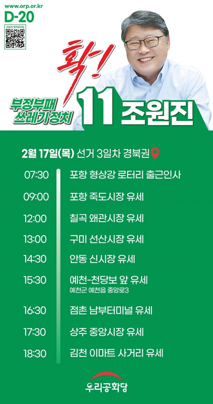2/17(¸ñ) [°æºÏ] 11¹ø Á¶¿øÁø ¿ì¸®°øÈ´ç ´ëÅë·É Èĺ¸ ÀÏÁ¤