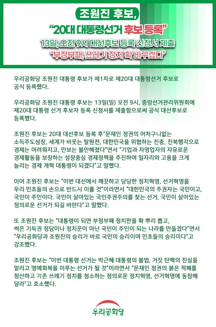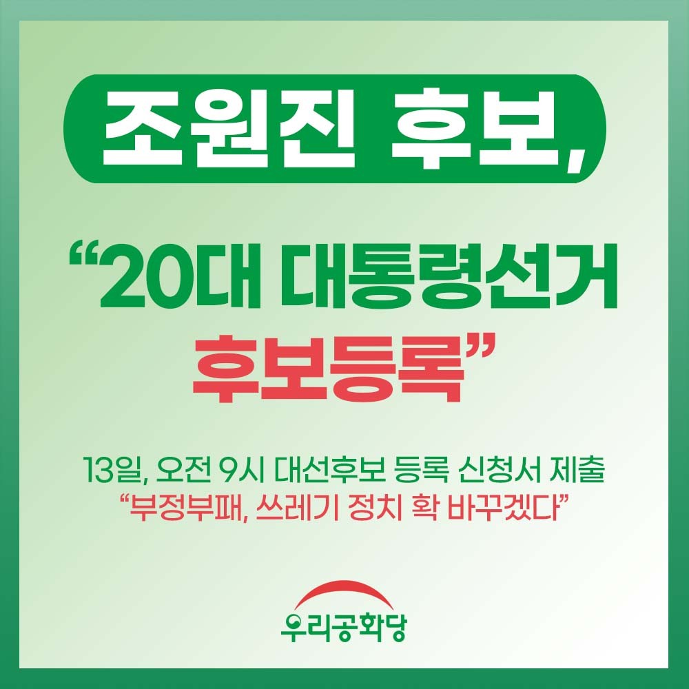 Á¶¿øÁø Èĺ¸, 20´ë ´ëÅë·É¼±°Å Èĺ¸ µî·Ï(220213)