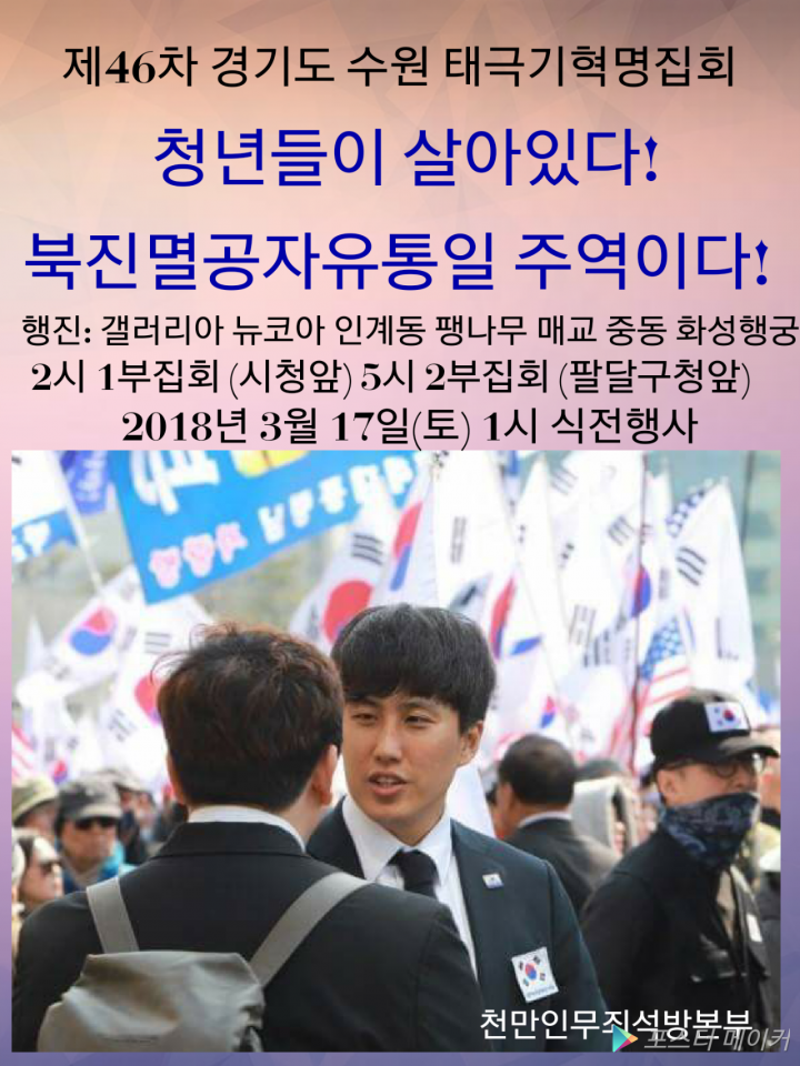2018³â 3¿ù 17ÀÏ(Åä) 1½Ã ½ÄÀüÇà»ç, 2½Ã 1ºÎ Áýȸ(½Ãû ¾Õ), 5½Ã 2ºÎ Áýȸ(ÆÈ´Þ±¸Ã» ¾Õ),