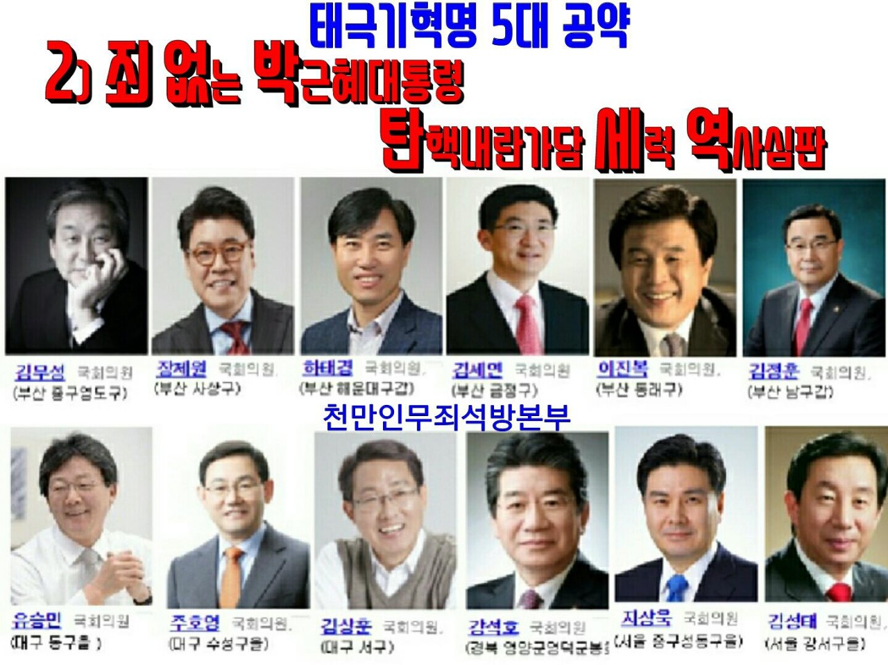 ´ëȸ»ç : ±è¿µ¹Ì(õ¸¸Àι«Á˼®¹æº»ºÎ ȸ¿ø), ¿ìÆÄ¼ºÁö¸í¿¹È¸º¹, ¹Î¼± ÁË ¾ø´Â ¹Ú±ÙÇý´ëÅë·É ±¸ÃâÇÏÀÚ! 3ºÐ