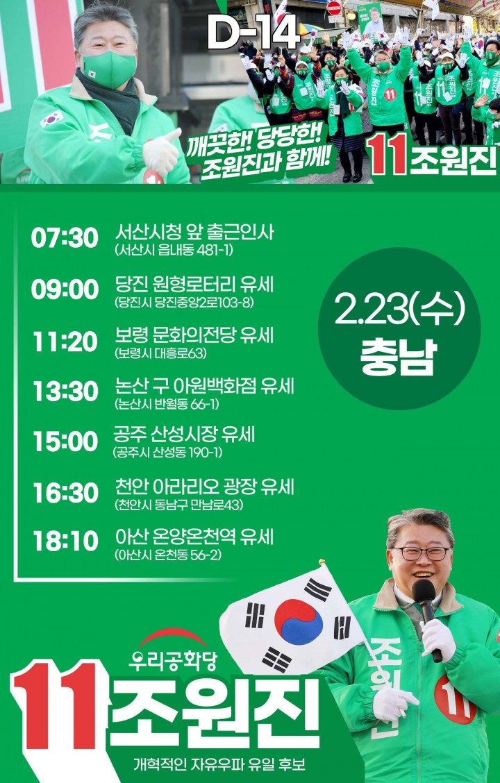 Á¦¸ñ : 2/23(¼ö) [Ãæ³²] 11¹ø Á¶¿øÁø ¿ì¸®°øÈ´ç ´ëÅë·É Èĺ¸ ÀÏÁ¤