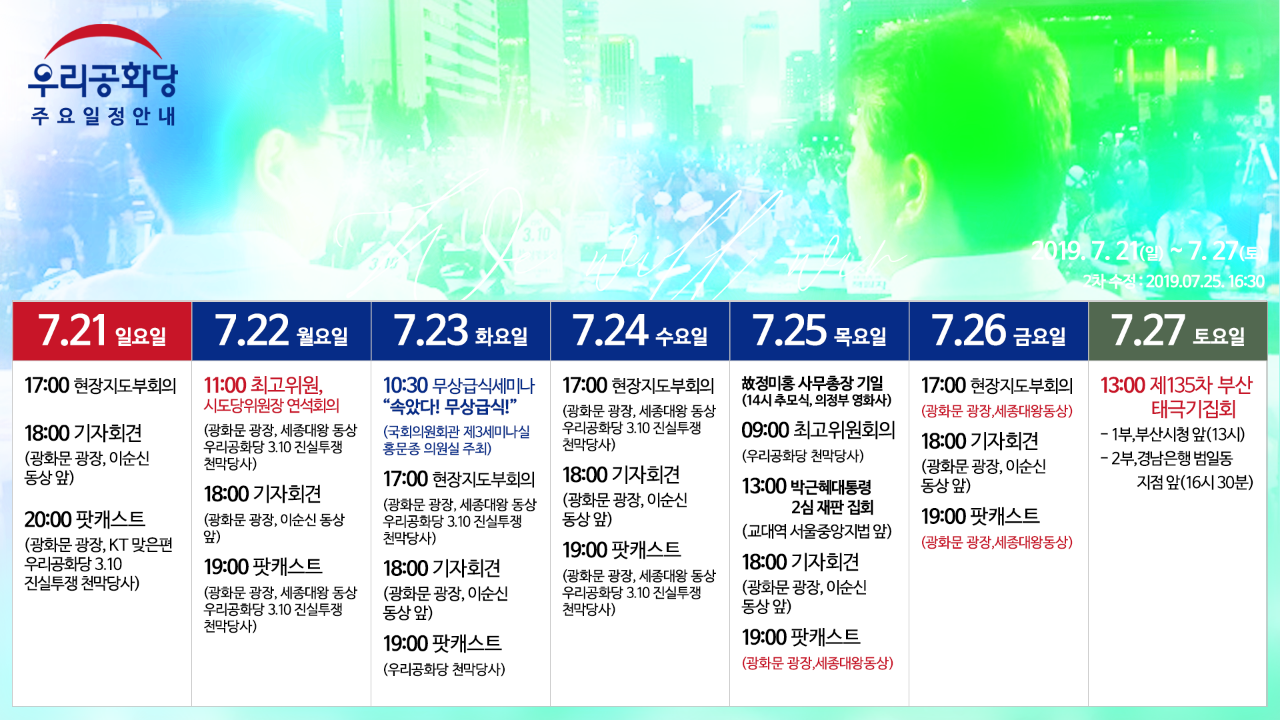 <2019³â 7¿ù 25ÀÏ(¸ñ) ¿ì¸®°øÈ´ç ÁÖ¿ä ÀÏÁ¤ ¾È³»>