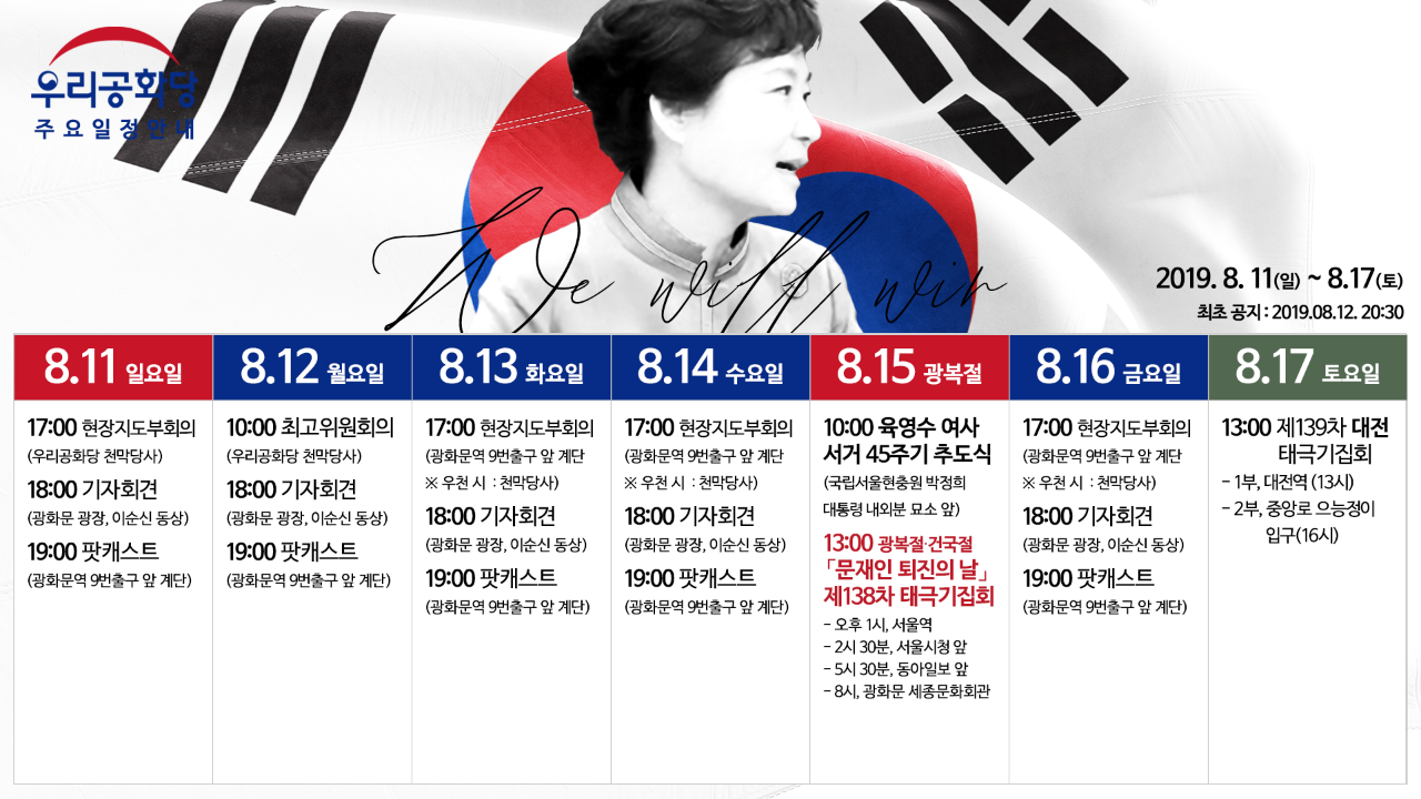 <2019³â 8¿ù 15ÀÏ(¸ñ) ¿ì¸®°øÈ´ç ÁÖ¿ä ÀÏÁ¤ ¾È³»>