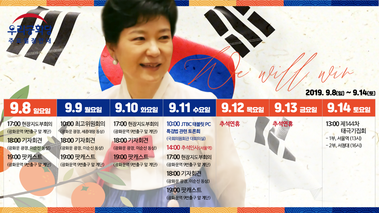<2019³â 9¿ù 14ÀÏ(Åä) ¿ì¸®°øÈ´ç ÁÖ¿ä ÀÏÁ¤>